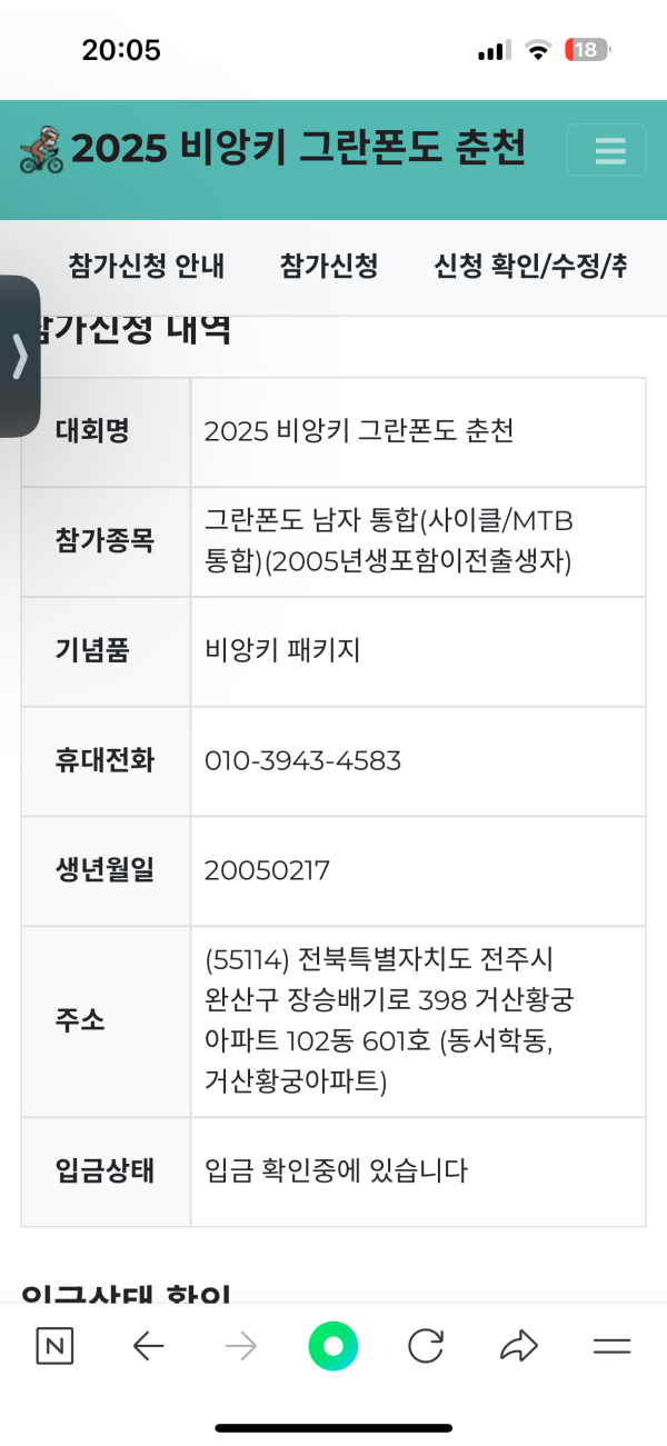 참가신청 확인 및 예금주 실수 확인 부탁드립니다