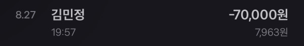 입금 시간은 8.27(수) 19:57 시간에 입금했습니다
